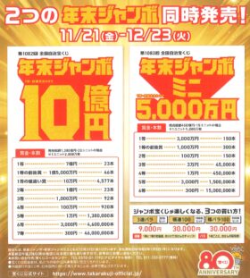 | R4.12.31 | 946回 | 年末ジャンボミニ | 2等 | 100万円 | |