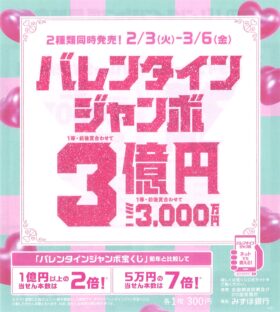 | R6.3.22 | 993回 | バレンタインジャンボ | 3等 | 100万円 | 2本 |